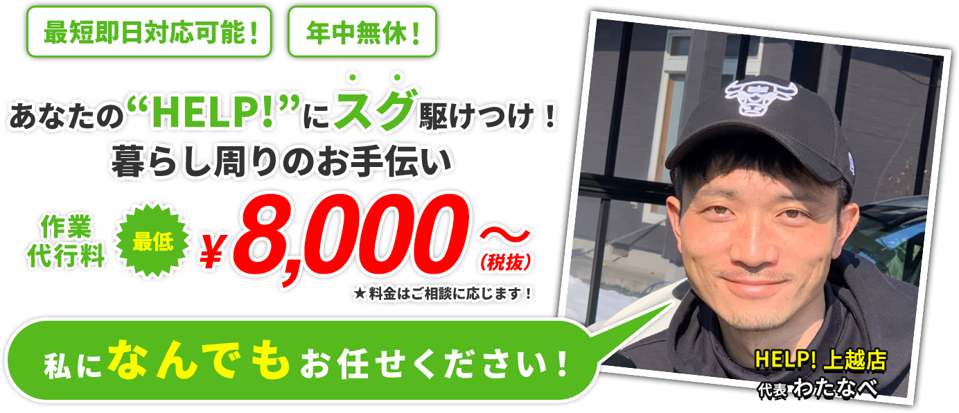 ”HELP!上越店”では、不用品整理やお庭の草木の手入れ・除草、その他あらゆる「生活周りのお手伝い」をさせて頂いています。 お困りの事があればなんでもお気軽にご相談ください!