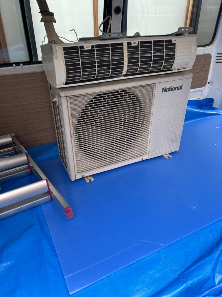 2階は足場がないのでハシゴをかけて室外機を下ろしました!